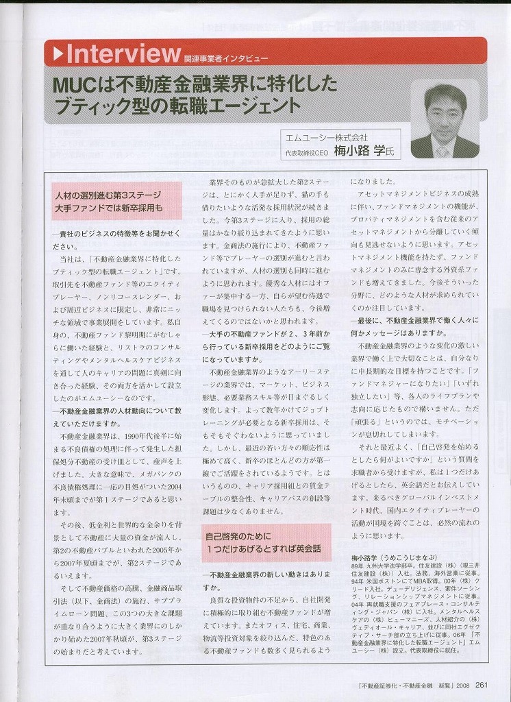 「2008年版 不動産証券化・不動産金融 総覧」当社記事