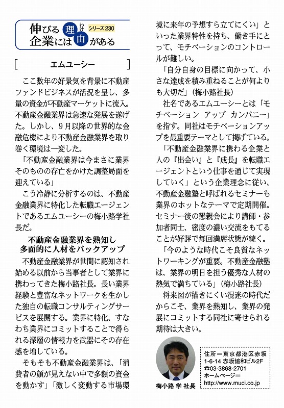 「フジサンケイビジネスアイ(2008年11月15日号)」当社記事