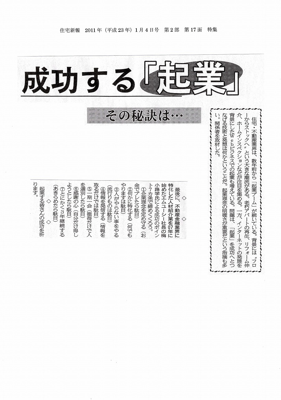 「住宅新報(2011年1月4日号 第2部)」当社記事