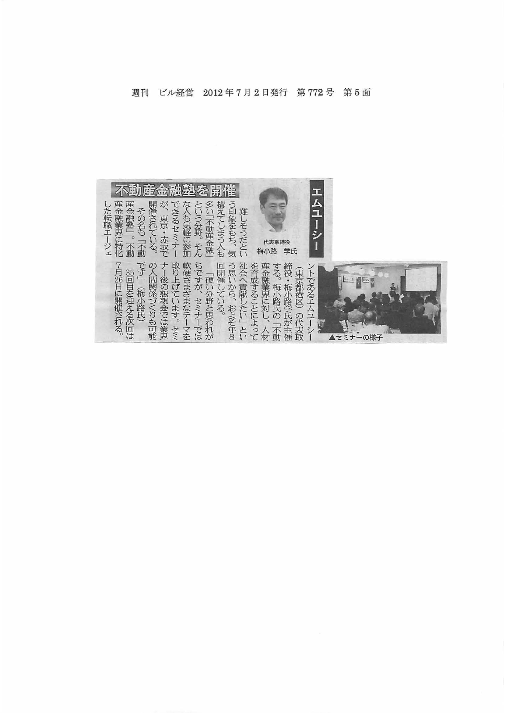 「週刊ビル経営(2012年7月2日号 第5面)」当社記事