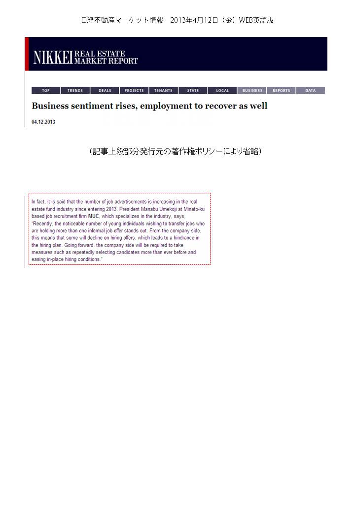 「日経不動産マーケット情報(2013年4月12日)WEB版」当社記事