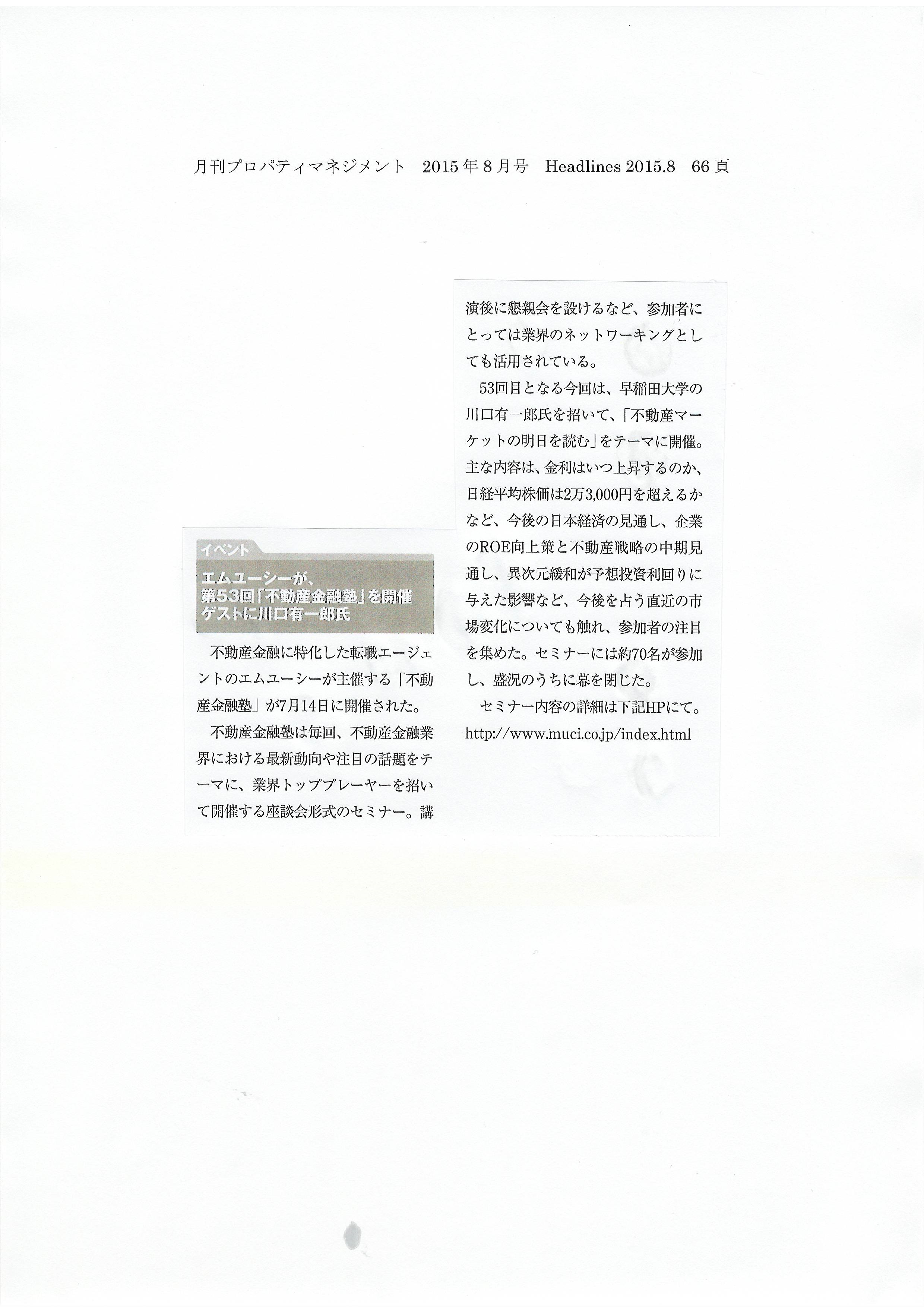 「月刊プロパティマネジメント 2015年8月号」当社記事
