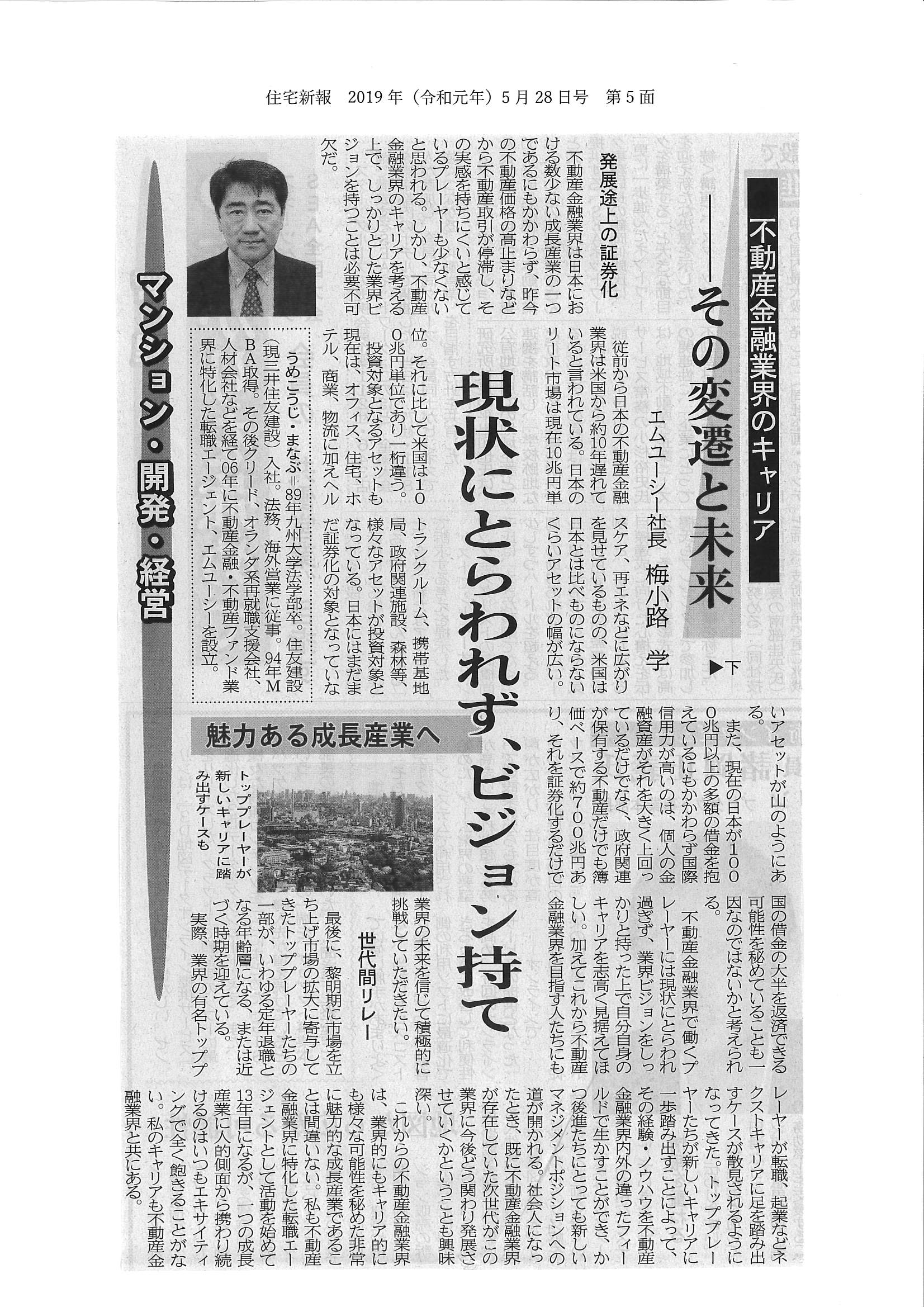 「住宅新報 2019年5月28日号」弊社連載記事(下)~現状にとらわれず、ビジョン持て~